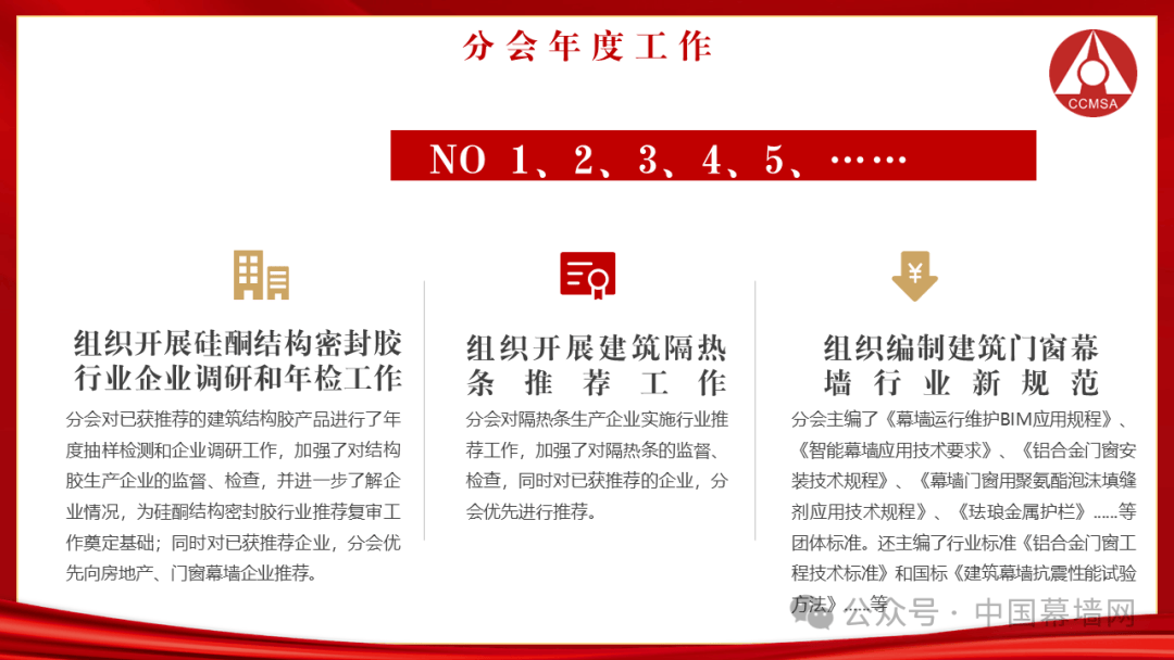 以开拓的眼光看待行业,以发展的目标推动行业,2023门窗技术培训班的会员企业服务活动,分会一口气举办了两期;2023全国幕墙设计及顾问专家会、第三届718上海幕墙共享设计节更是推动行业设计水平提高的重要活动,大大小小数十场各类服务及平台交流活动方便了分会会员企业的市场与管理、技术提高,为拓展会员的视野,更好了解国外市场及行业趋势,为帮助会员学习先进制造技术,了解最新制造业市场趋势,为加强整合协会内外资源,探讨行业未来发展方向做出了贡献。
